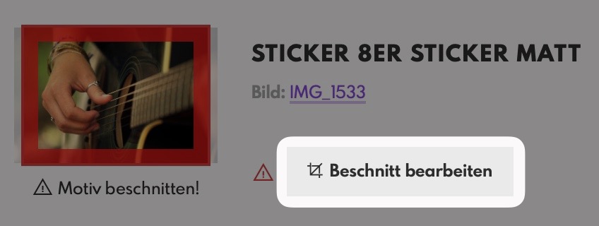 Klicken Sie auf "Beschnitt bearbeiten" und bestätigen Sie den Beschnitt durch erneutes Speichern.